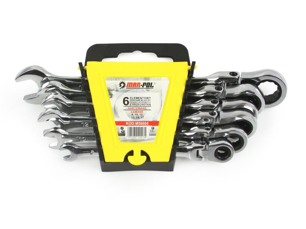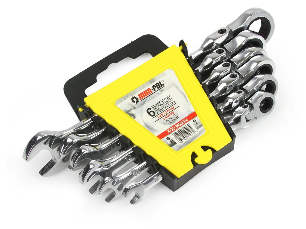 Sada MAR-POL M58604 je ideálna pre každého, kto hľadá spoľahlivé, flexibilné a odolné náradie do dielne, servisu či domácej garáže. Obsahuje 6 račňových kľúčov s kĺbovou hlavou vo veľkostiach 8 mm, 10 mm, 12 mm, 13 mm, 17 mm a 19 mm – pokrýva tak najčastejšie používané rozmery.