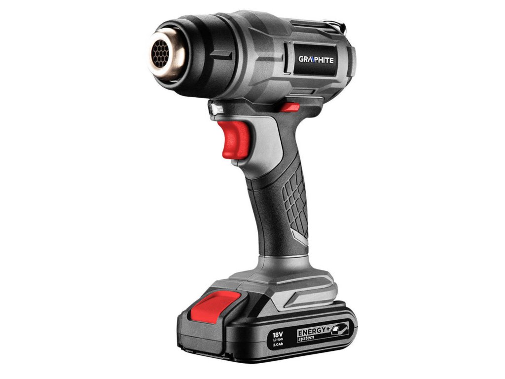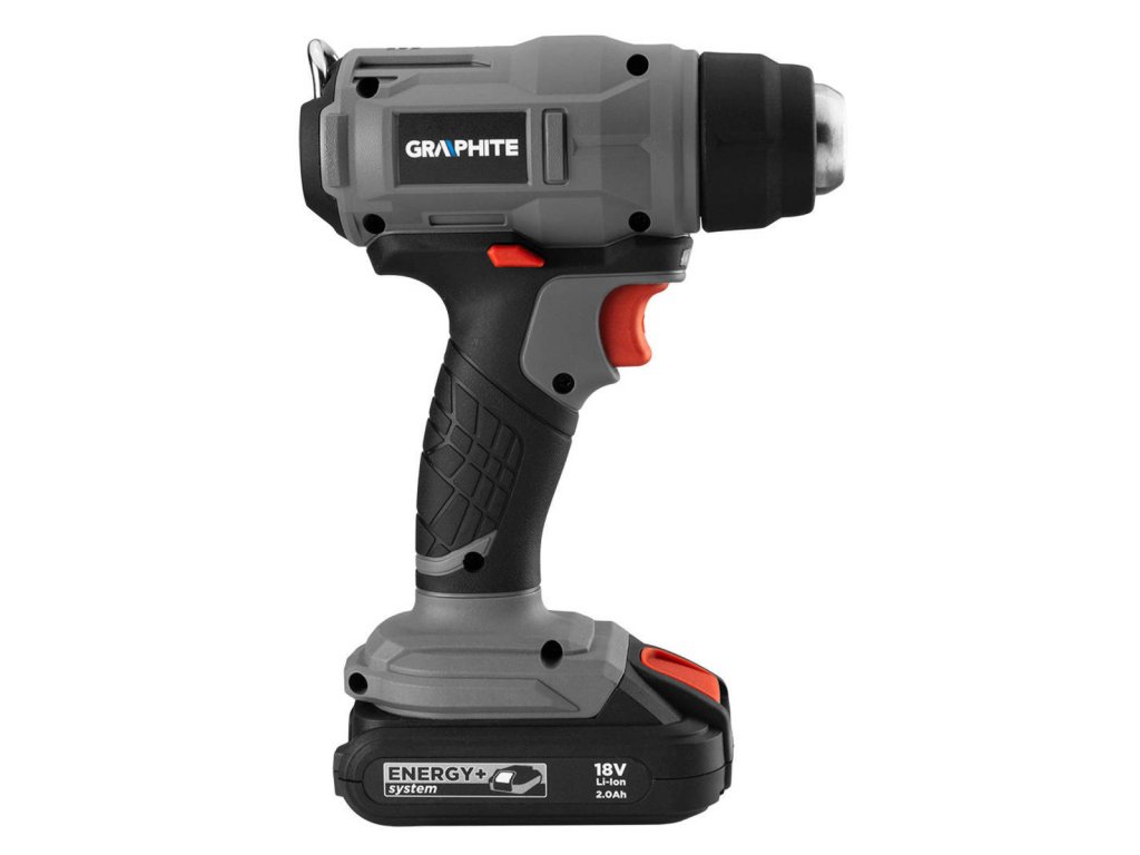 Akumulátorová teplovzdušná pištoľ GRAPHITE Energy+ 58G082 je praktický bezdrôtový nástroj určený na práce s horúcim vzduchom. Vďaka maximálnej teplote až 550 °C a prietoku vzduchu 200 l/min zvládne aj náročné úlohy ako odstraňovanie farby, tvarovanie plastov, zmršťovanie bužírok či rozmrazovanie.