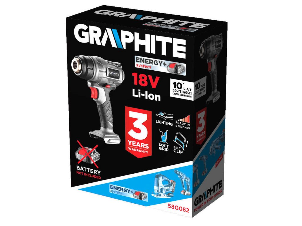 🔥 Akumulátorová teplovzdušná pištoľ 18V – GRAPHITE Energy+ 58G082