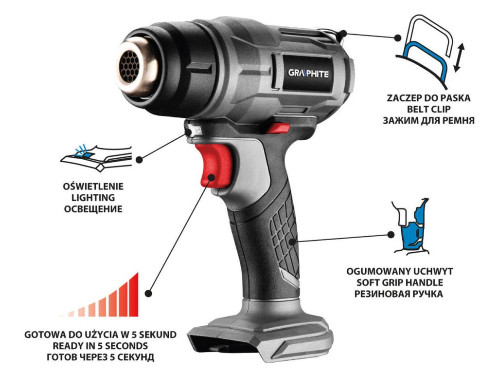 1× Akumulátorová teplovzdušná pištoľ GRAPHITE 58G082