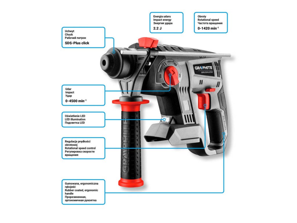 Akumulátorové vŕtacie kladivo 2.2 J GRAPHITE Energy+ 58G027