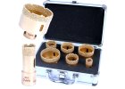 Profesionálna sada diamantových korunkových vrtákov M14 RAPID segment na suché vŕtanie do gresu, kameňa, žuly, mramoru a klinkeru, v hliníkovom kufri, Ø 20–76 mm.