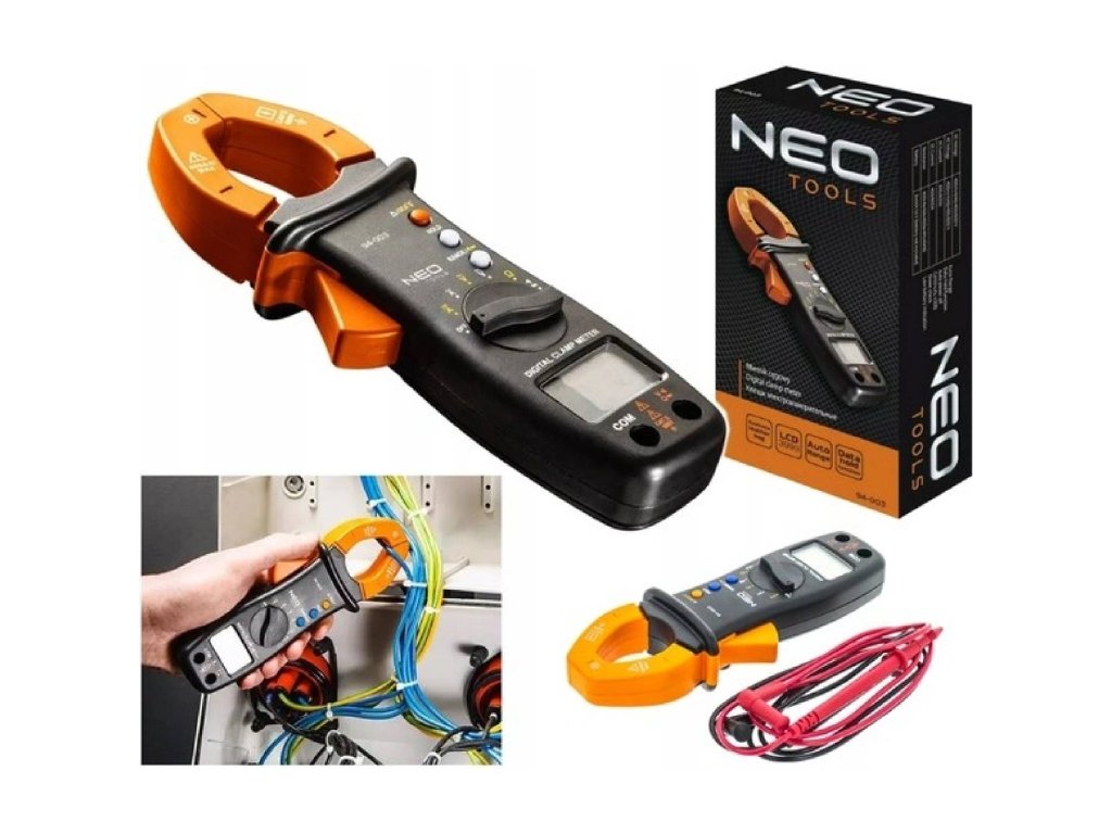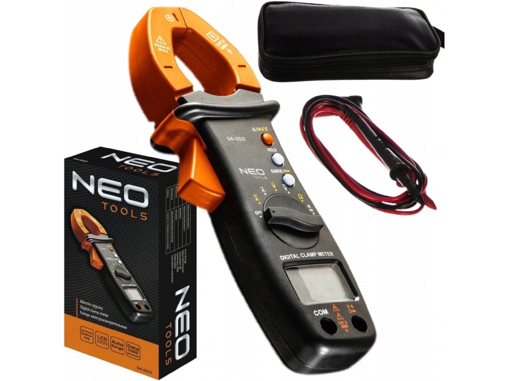 Digitálny kliešťový ampérmeter NEO Tools 94-003 je univerzálny svorkový merač prúdu určený na presné meranie striedavého (AC) aj jednosmerného (DC) prúdu a napätia. Okrem toho zvládne meranie odporu, teploty, diód a kontinuity obvodov.