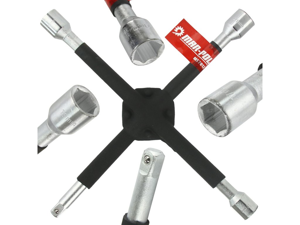 Krížový kľúč MAR-POL M57012 – robustný a spoľahlivý nástroj určený na rýchle a bezpečné uvoľňovanie či uťahovanie kolies automobilov. Vyrobený z vysoko kvalitnej legovanej ocele s dodatočným vystužením, odolá aj práci so zaseknutými skrutkami.