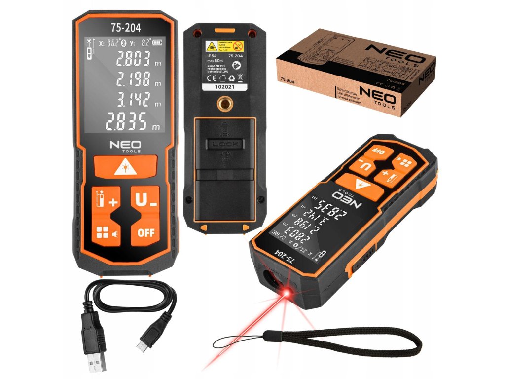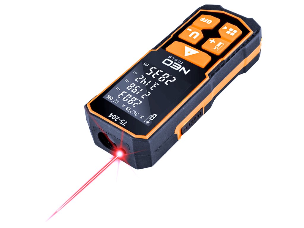 Laserový diaľkomer NEO 75-204 je presný a odolný merací prístroj určený pre profesionálne aj domáce využitie. S dosahom až 60 m a presnosťou ±2 mm umožňuje rýchle a spoľahlivé meranie vzdialeností, plôch aj objemov.