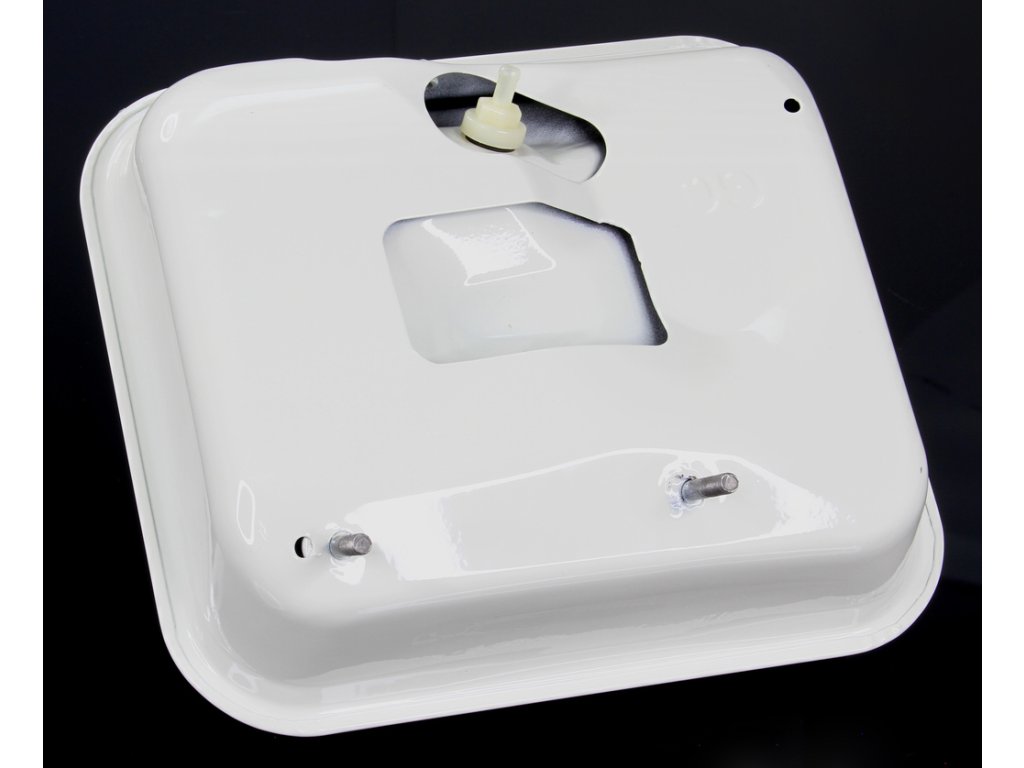 Nádrž je vyrobená z **hrubého vystuženého oceľového plechu**, ktorý poskytuje vysokú odolnosť voči vibráciám a mechanickému poškodeniu. Uzáver s tesnením zaisťuje spoľahlivú tesnosť a zabraňuje úniku paliva.