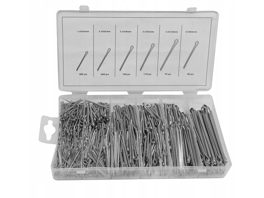 Táto sada 1000 ks kvalitných závlačiek je určená na spoľahlivé zabezpečenie mechanických spojov proti posunu alebo samovoľnému uvoľneniu. Využívajú sa najmä pri upevňovaní pohyblivých častí, ako sú osi, hriadele, otočné čapy či korunkové matice.