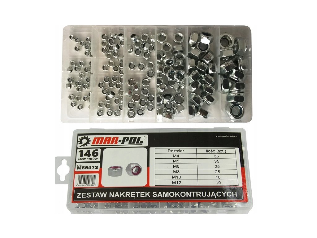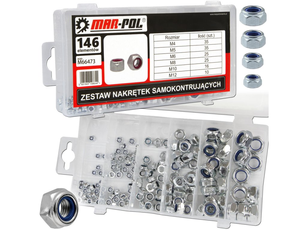 Sada 146 ks metrických matíc MAR-POL M66473 je praktickým riešením pre každú dielňu, domácnosť aj profesionálne použitie v priemysle či stavebníctve. Obsahuje najčastejšie používané veľkosti M4, M5, M6, M8, M10 a M12, vďaka čomu poskytuje univerzálne možnosti pri montáži a upevňovaní rôznych konštrukčných a mechanických prvkov.