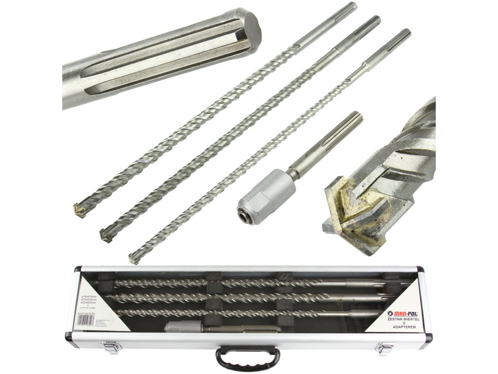 Sada tyčových vrtákov SDS MAX – MAR-POL M23575 (600 mm, 16/20/22 mm + adaptér)