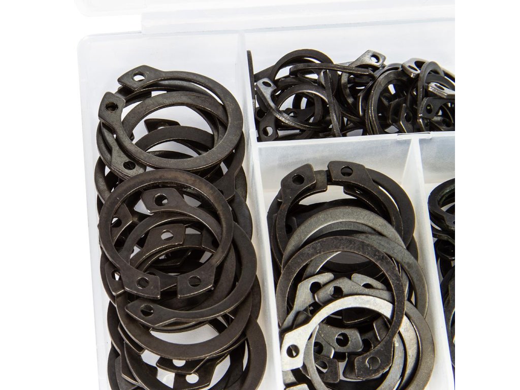 Táto sada segrových krúžkov je určená na spoľahlivé zabezpečenie ložísk, ozubených kolies, puzdier a ďalších mechanických častí pred uvoľnením na hriadeľoch a osiach. Krúžky sa jednoducho vkladajú do drážok na vonkajšom obvode hriadeľa a vytvárajú pevné a bezpečné spojenie.