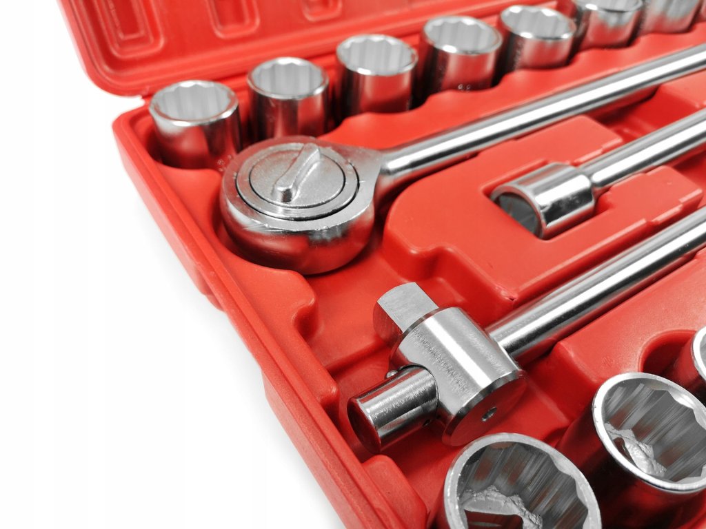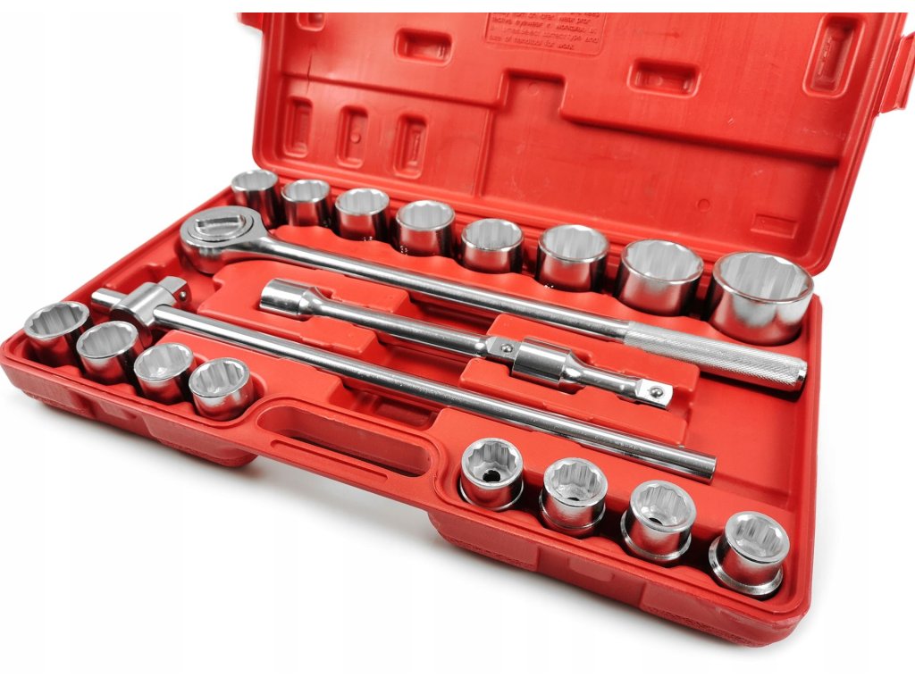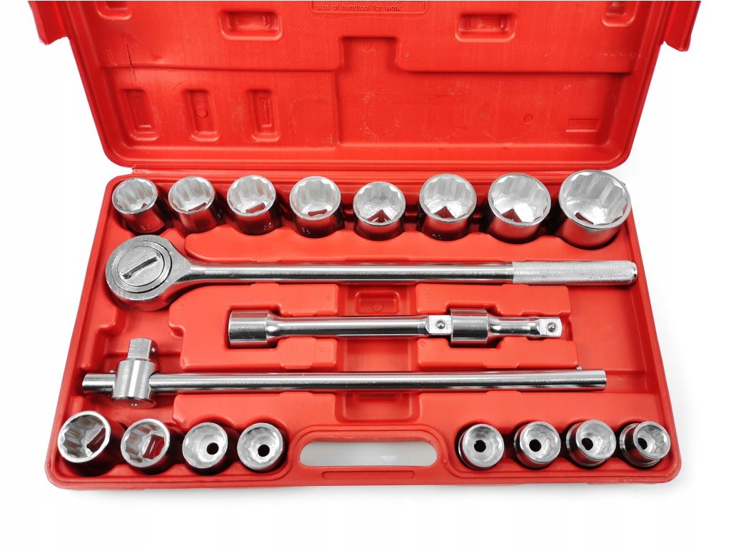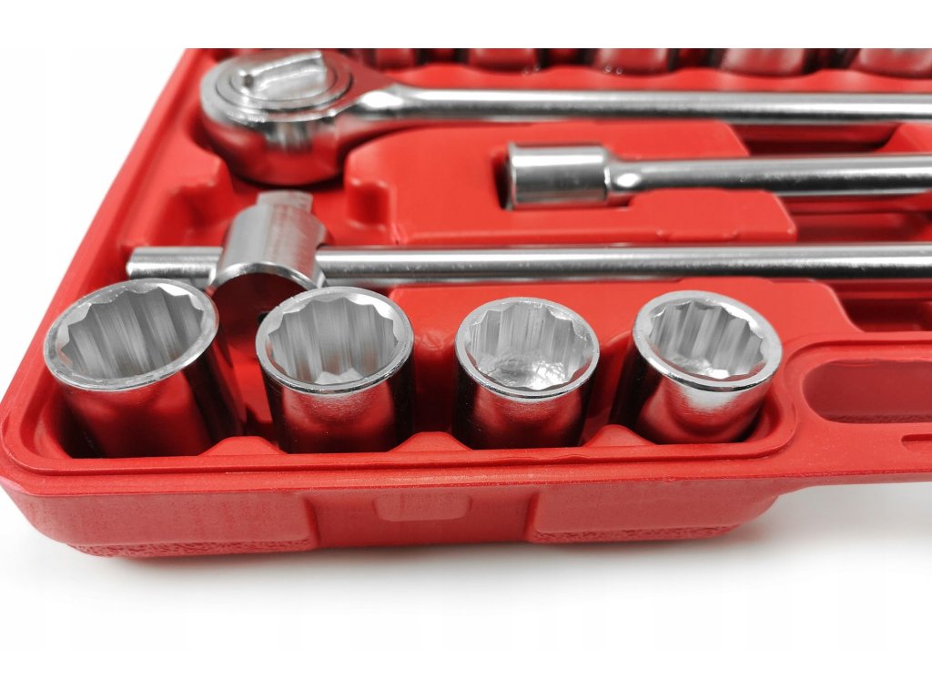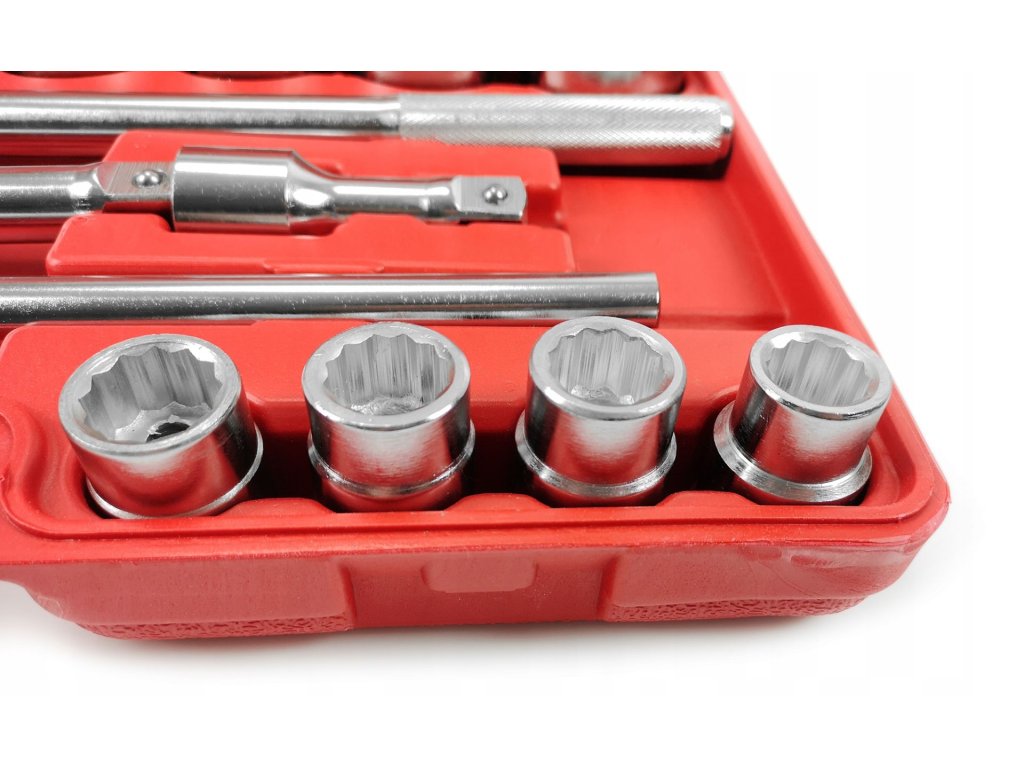 12-hranné vnútorné vyhotovenie umožňuje presné povoľovanie alebo uťahovanie veľkých skrutiek a matíc. Všetky nástroje sú uložené v praktickom plastovom kufríku, ktorý zjednodušuje organizáciu a prenos.
