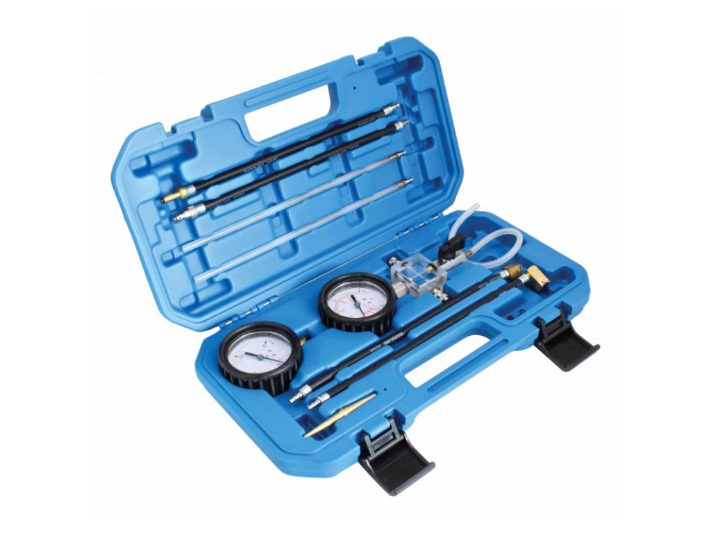 Diagnostika prebieha pomocou manometrov, ktoré merajú tlak a identifikujú možné úniky alebo problémy s tlakom paliva. Súčasťou je aj priehľadná komora s vypúšťacím ventilom, ktorá umožňuje vizuálnu kontrolu prítomnosti vzduchových bublín v palive, čo môže indikovať nesprávnu funkciu vstrekovačov.