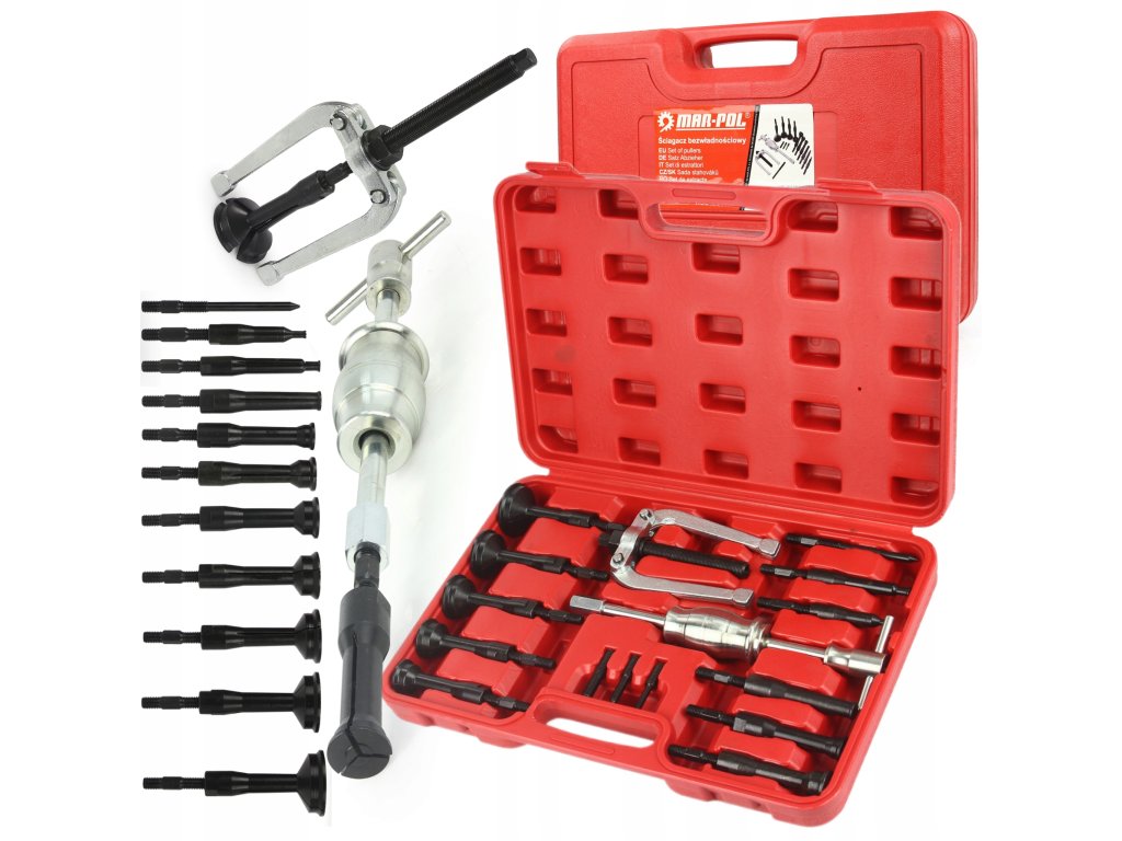 Sada MAR-POL M06022 je určená na demontáž vnútorných ložísk a puzdier bez poškodenia okolitých komponentov. Obsahuje presné vyťahovacie adaptéry a reverzné kladivo, ktoré zabezpečuje efektívne a rýchle vytiahnutie ložísk.