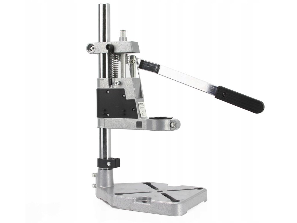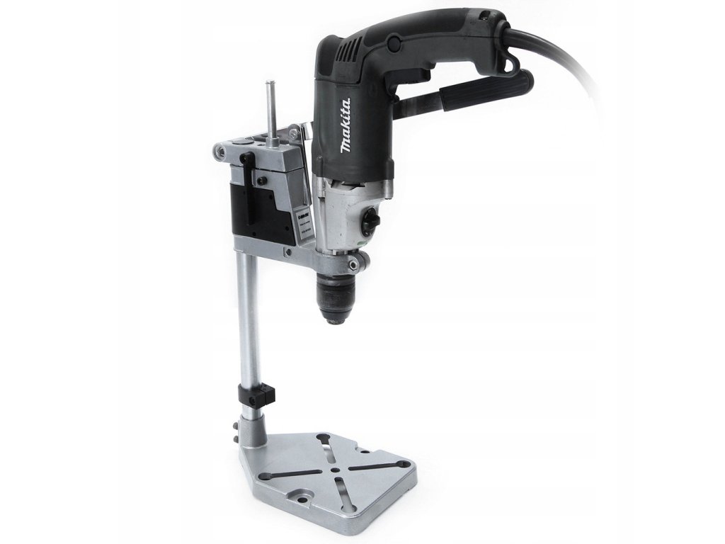 Stojan umožňuje vertikálnu zmenu polohy vrtáka, čím sa zaručuje presné a opakované vŕtanie v rovnakom smere a hĺbke. Je vyrobený z odolného hliníkového tela, ktoré je ľahké, ale zároveň pevné.